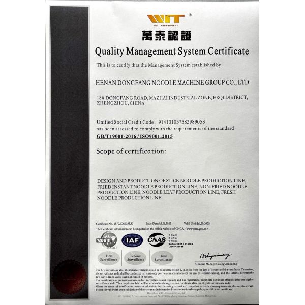 Henan Dongfang Noodle Machine Group Co.,Ltd. Established in 1975, specializes in the design, manufacture and marketing of various fully automatic noodle production lines.